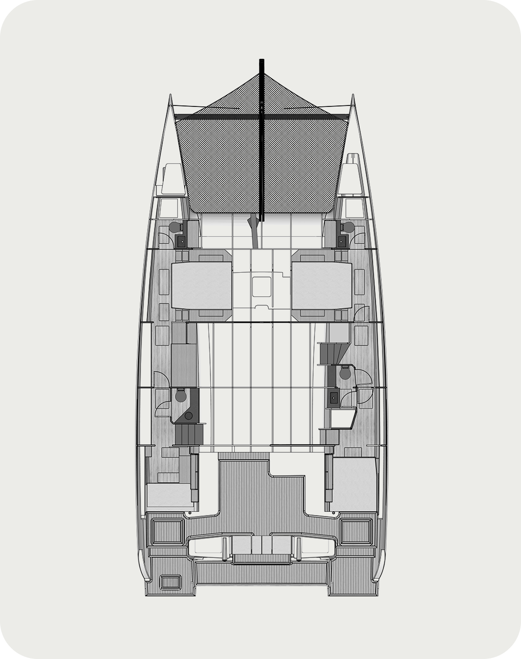 Each Kinetic is bespoke. Work with our design team to discover your KC54’s unique personality and characteristics. With everything from layouts to finishes, you can create a yacht interior that is truly your own.